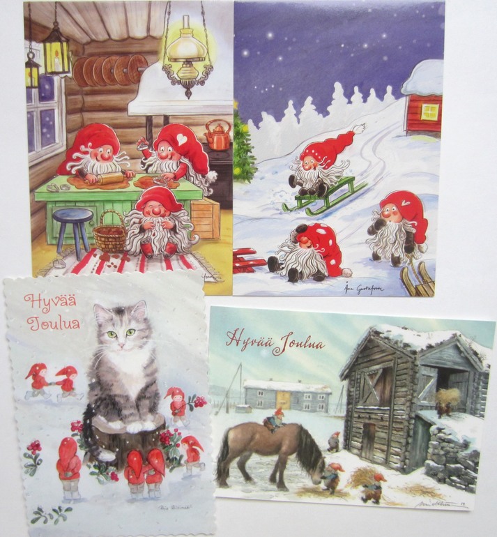 Совершенно неожиданно у скучающего мужчины с открытками и календариками обнаружился целый альбом с финскими открытками, и моя коллекция гномов пополнилась: