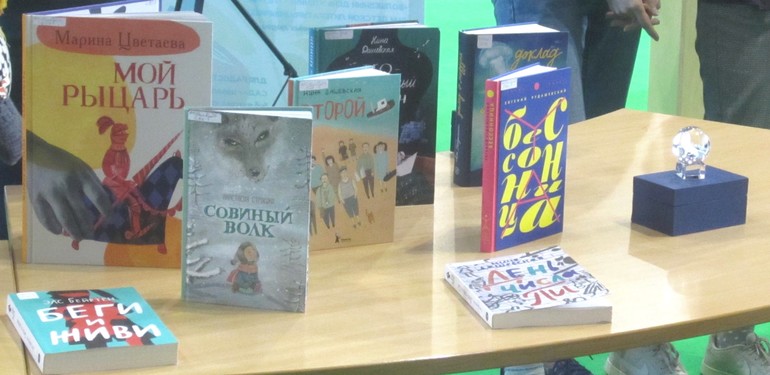 В пятницу Ленинградская областная детская библиотека проводила на Салоне своё мероприятие: вручали знак "Нравится детям Ленинградской области" 10 лучшим книгам 2018 года по выбору Детского Читательского Жюри. Это всегда любопытно, это всегда интересно, тем более они не только вручают этот знак представителям издательств, а обосновывают выбор цитатами из отзывов читателей.