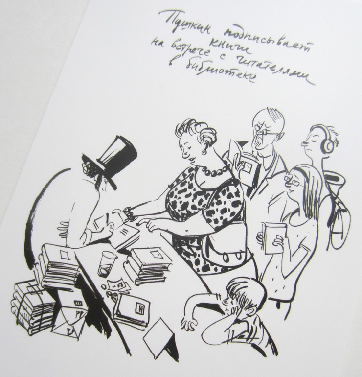 Хотя и много времени проводишь на Салоне, но любопытные вещи просто ускользают. Хорошо, что знаниями и наблюдениями в период Салона делятся знакомые и друзья. Только благодаря этому я теперь с набором открыток Евгении Двоскиной "Пушкин: продолжение", их там аж 20 штук!