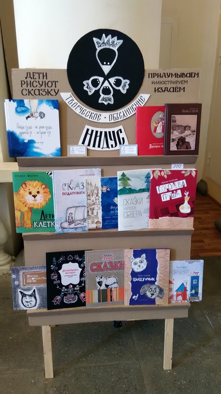 Небольшой стенд при входе в основной зал Михайловского манежа. Большинство названий и авторов хорошо знакомы, а вот художники... Художники - дети! В Ярославле дети занимаются и рисуют, а затем книги с их иллюстрациями верстаются в Санкт-Петербурге.