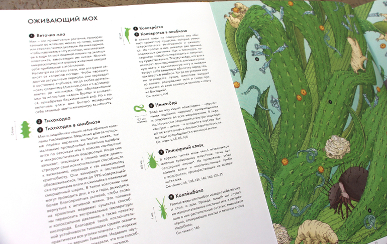 И картинки с книге, и описания всех существ очень интересные. Реально мы, взрослые сами забываем, что жизнь есть везде. Что каждая капля воды в природе и щелка в нашей квартире, скорее всего, обитаемы.