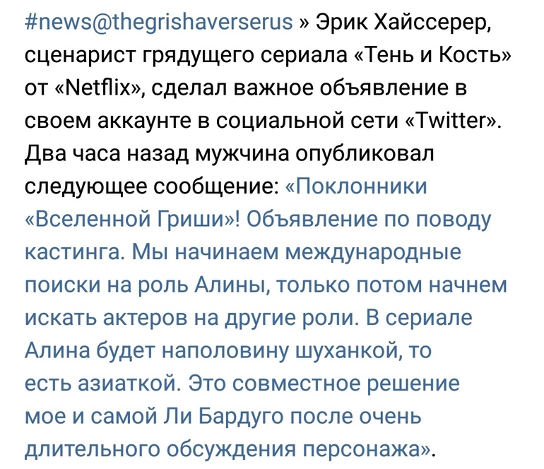 Сейчас параллельно читаю трилогию про гришей. Во второй части встретилось упоминание сказки про умного лиса. Восторгу не было предела)))