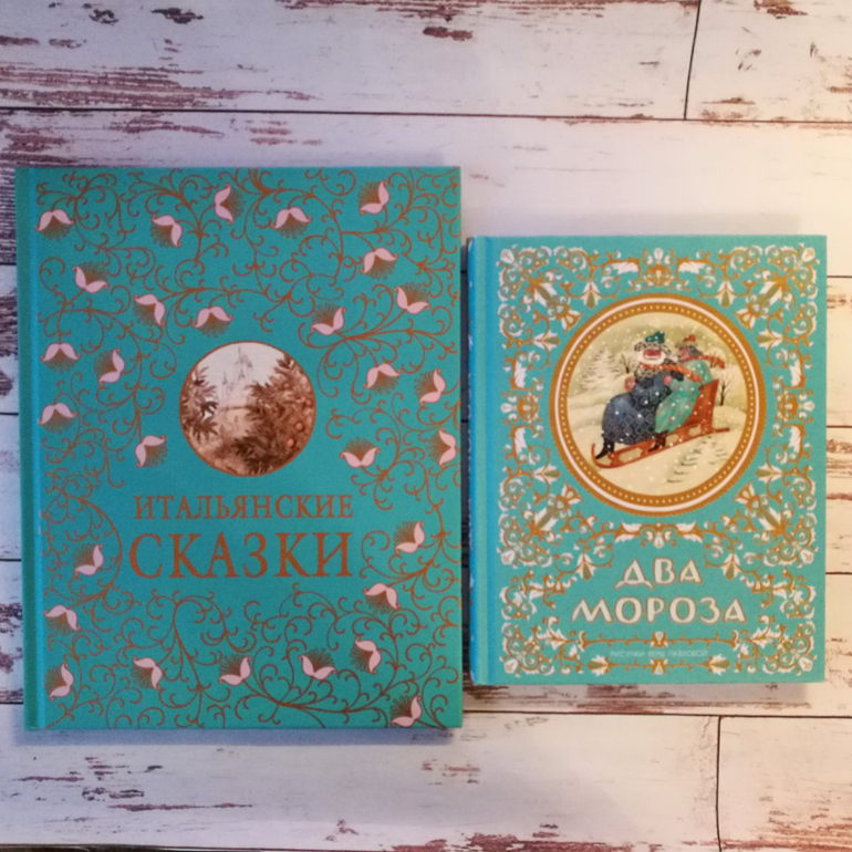 Эти думала будут серией, не досмотрела, купилась на цвет обложки, оказалось они не пара)) Брала из-за иллюстраций Веры Павловой "Два Мороза" очень люблю Веру Павлову, Хотелось бы иллюстраций на всю страницу, зажали их там немного, но они волшебные. Книжка как шкатулка. Ну Итальянцы случайно попали, почитаем, посмотрим, пока ничего не могу сказать, от иллюстраций в обморок не упала. Иллюстрации для меня очень важны.