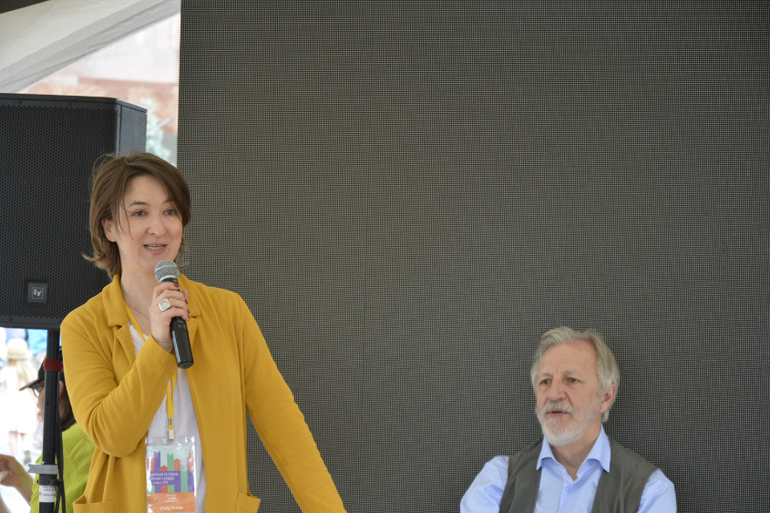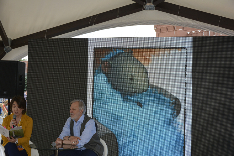 Когда нашла маму и Росю, они слушали на главной сцене про Московский Зоопарк! Рассказывали Валерий Яременко, Ольга Прокофьева, спряталась за Яременко и в кадр не попала(, Ирина Безрукова - потрясающая женщина - красавица! Выглядит, как богиня! Михаил Полицеймако, Валерия Ланская и Теона Дольникова!