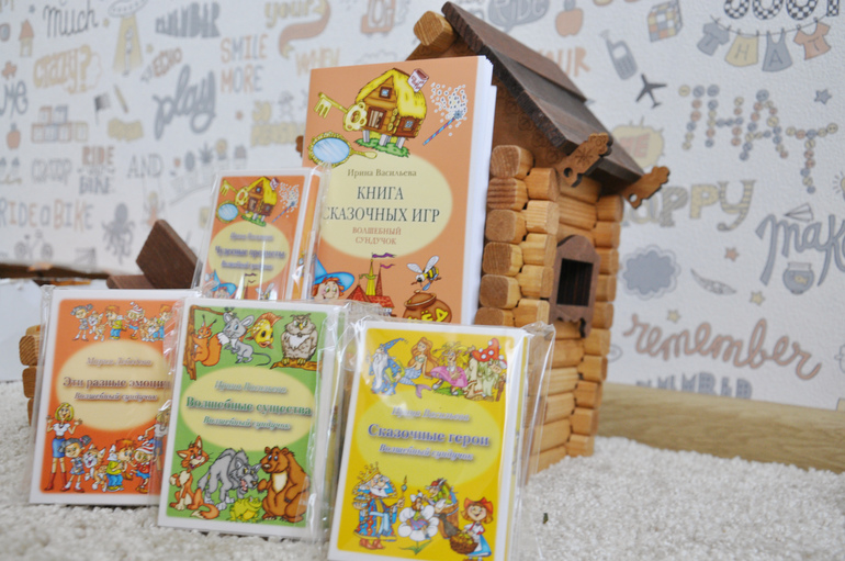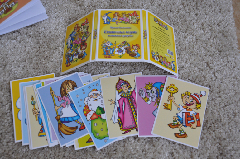 Сказочные герои, Волшебные существа, Чудесные предметы, Эти разные эмоции. Карточки хорошего качества, яркие, плотные. К ним идет "Книга сказочных игр".