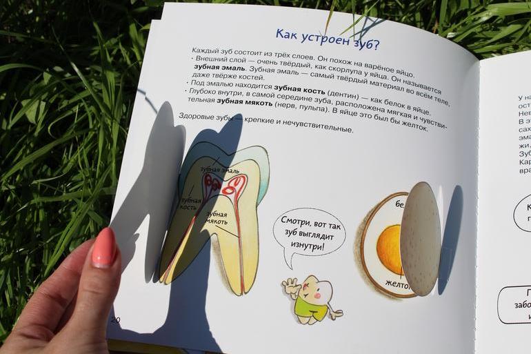 Но несмотря на все интерактивные моменты, моя дочка этой книгой не прониклась. Подергать клапаны, конечно, занятно, но в 3 года этим уже не удивишь. Допускаю, что материал книги пока сложноват. Но везде столько было прекрасных отзывов именно от мам 3-4х-леток. Да и зубная тематика нам близка: у младшего как раз зубы лезут, у двоюродной сестренки выпадают...