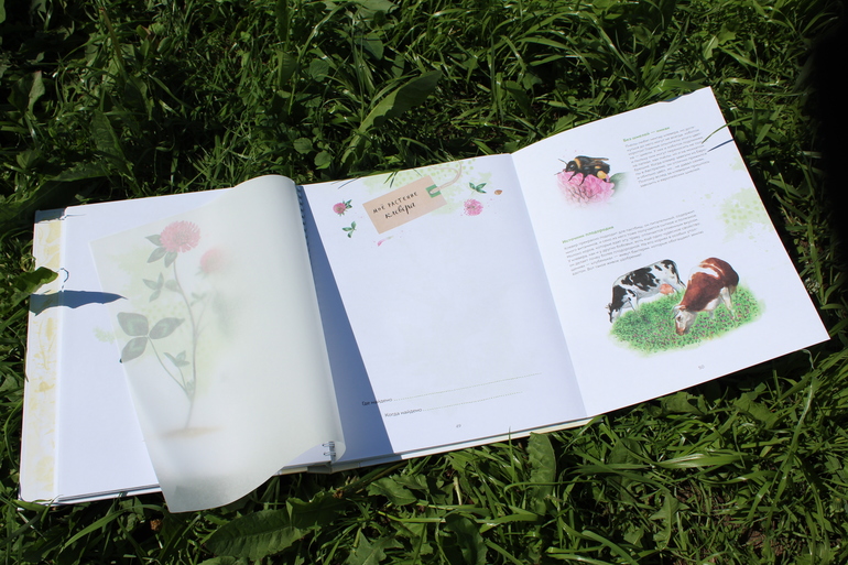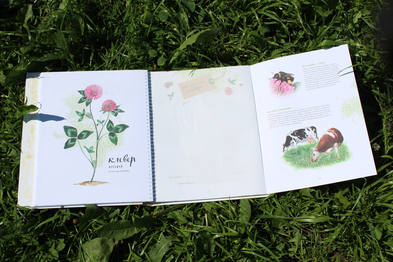 Том огромного формата, выполнен в виде картонной папки с листами на пружине. Основных персонажей - 15. И это всё растения, которые можно встретить на расстоянии вытянутой руки в средней полосе России.