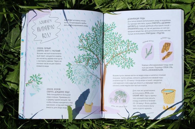 Воды нет, зато есть огромное количество инсайтов. Я до сих пор не умела разводить костер без спичек и оставлять знаки для ориентирования на местности. Зато солнечные часы в детстве очень любила делать. Правда, успела об этой затее благополучно забыть. Спасибо, что напомнили. Мастхэв для любой семьи, где родители не любят сидеть на месте и хотят показать детям интересный мир за пределами планшетов.