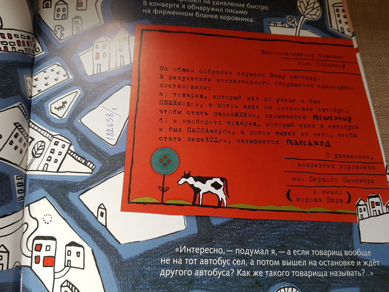 В этой книге вагоновожатый вступил в переписку с деревенской коровой Нюрой. В своих письмах они рассказывают другу другу про своё житье-бытье и обсуждают много других насущных тем.