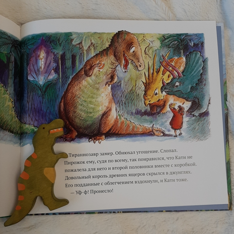Ей предстоит познакомиться с разными видами динозавров поближе, и убедиться, что пирожки с мясом ценятся даже грозными тиранозаврами)