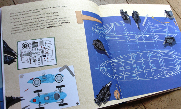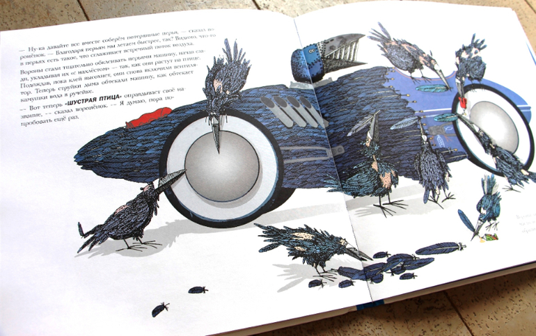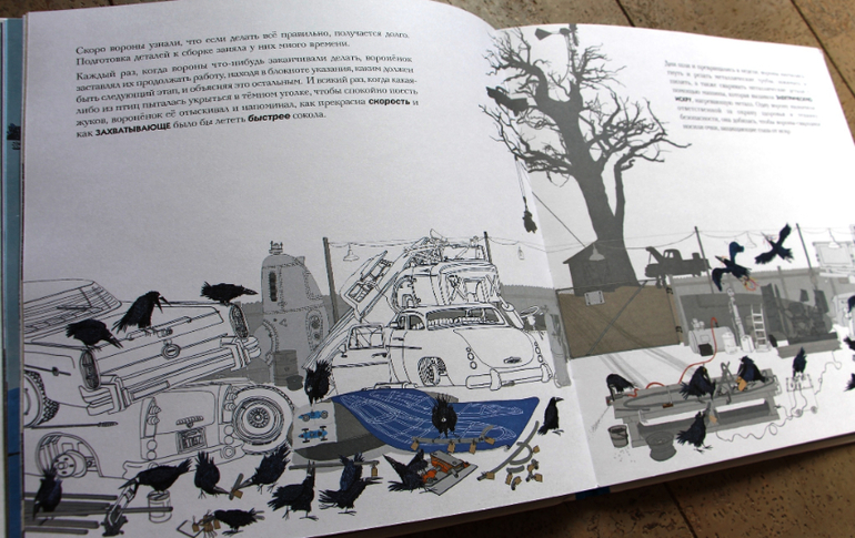 На этот раз автомобиль собирает стая воронов во главе с очень целеустремленным вороненком. И, пожалуй, это главный посыл книги: верить в себя, стремиться к мечте, ставить и достигать цели, а для этого надо шевелить мозгами и быть любопытным.
