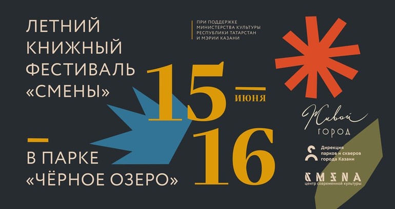 15 и 16 июня - Летний книжный фестиваль «Смены» на Черном озере в Казани . «Смена» пройдет в парке «Чёрное озеро», где можно будет и погулять, и послушать лекции, и, конечно, закупиться книжками на всё лето вперёд! Книжная ярмарка будет работать с 11:00 до 19:00 оба дня.