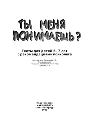 Ты меня понимаешь. Тесты для детей 5-7 лет с рекомендациями психолога. Васильева Т.В.