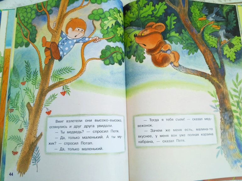 Больше всего нравится сказка третья, про злого охотника, который хотел убить медведя с медвежонком, но мальчик Петя кое-что придумал :
