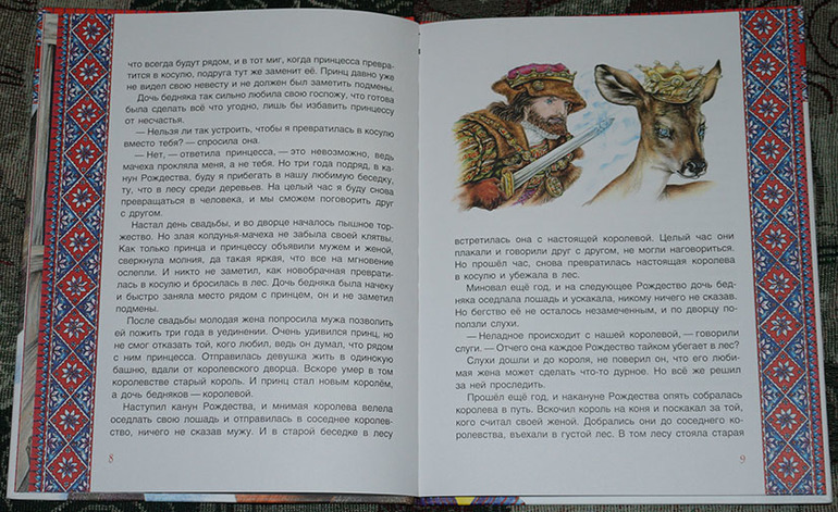 Красивая и необычная история о заколдованной косуле. Мачеха наложила на свою падчерицу заклятье, обращавшее её в косулю в тот самый момент, когда она выйдет замуж за принца. И чтобы снять это заклятие, прекрасному принцу пришлось пролить кровь косули, то есть своей невесты. Страсти похлеще, чем в детективах. ;)