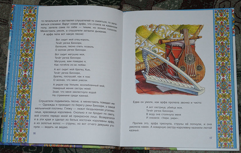 История еще одного убийства, сестра убила сестру из ревности и в погоне за состоянием жениха. А странствующий менестрель, увидевший прекрасную утонувшую девушку, "сделал из её белых косточек арфу, а из золотых волос - звонкие струны, а потом отправился в замок короля, отца утонувшей красавицы".