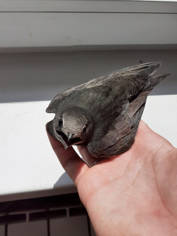 Птенец стрижа залетел на балкон к бабушке. Коля как раз был у нее в гостях. Осмотрел птенца, тот был абсолютно здоров, поднял его повыше и тот улетел. ))