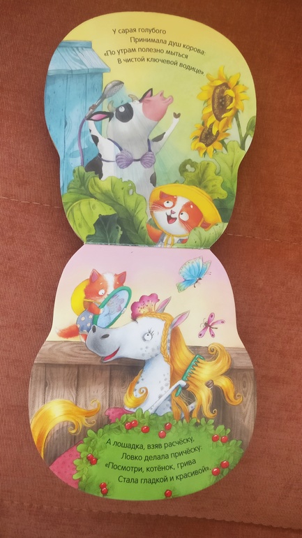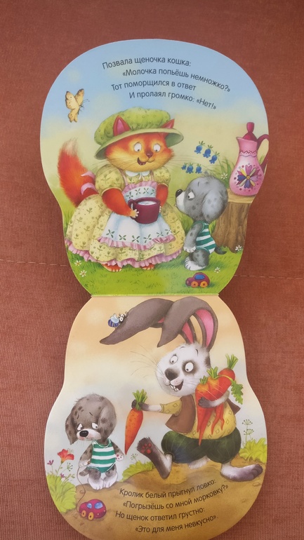 Картон плотный, но в них оказалось всего четыре разворота с короткими стишками и милыми, но довольно простыми картинками.