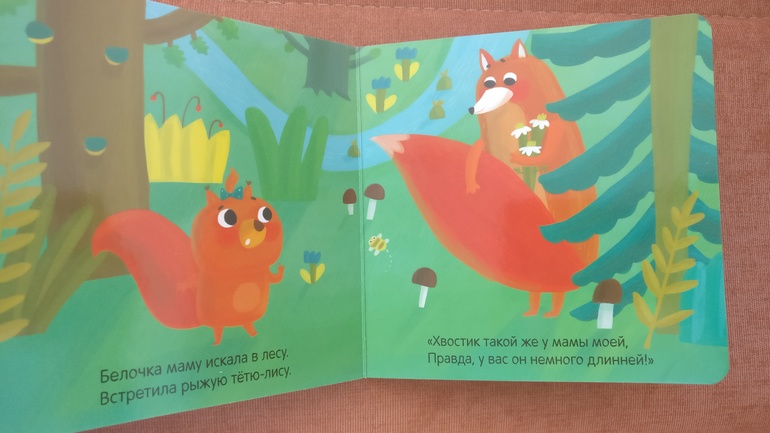 Про бельчонка книжка несильно отличается, такие же четыре странички, скромные стишки и в конце встреча с мамой белкой.