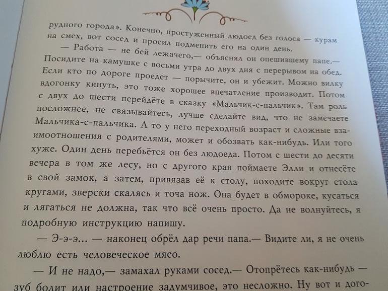 Так папа и Леська оказались в сказке. Работа оказалась утомительной : только и придумывай, под каким предлогом отказаться есть очередного царевича. Они такие настойчивые: все неперменно хотят быть съеденными. Даже кляузу написали.
