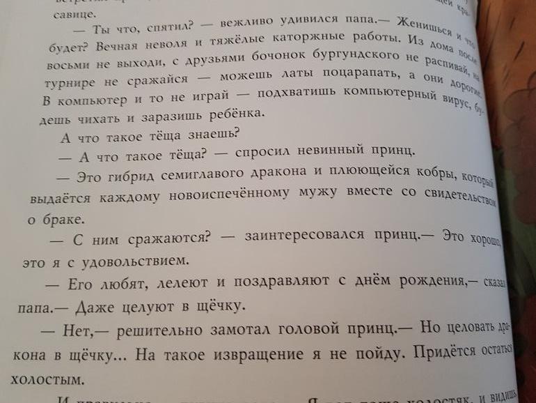 Это папа искал аргументы для принца: почему ему не стоит целовать спящую красавицу и жениться на ней. Запугивал его ... тёщей.