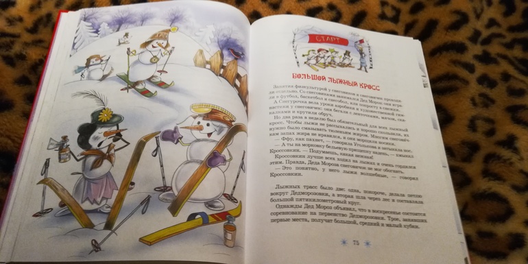 У нас одна толстая книга, в которой собраны четыре повести. Пока мы прочитали только первую - Школа снеговиков. Старшая дочка в восторге. Спрашивает, почему мы не читали ее раньше. Самый любимый снеговик - Морковкин, наверное, потому что он такой же озорник, как и мои девчонки) Младшая тоже любит книгу, рассматривает рисунки снеговиков и снеговичек, угадывает, кто есть кто)