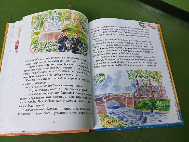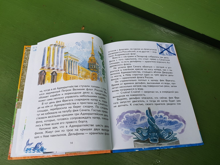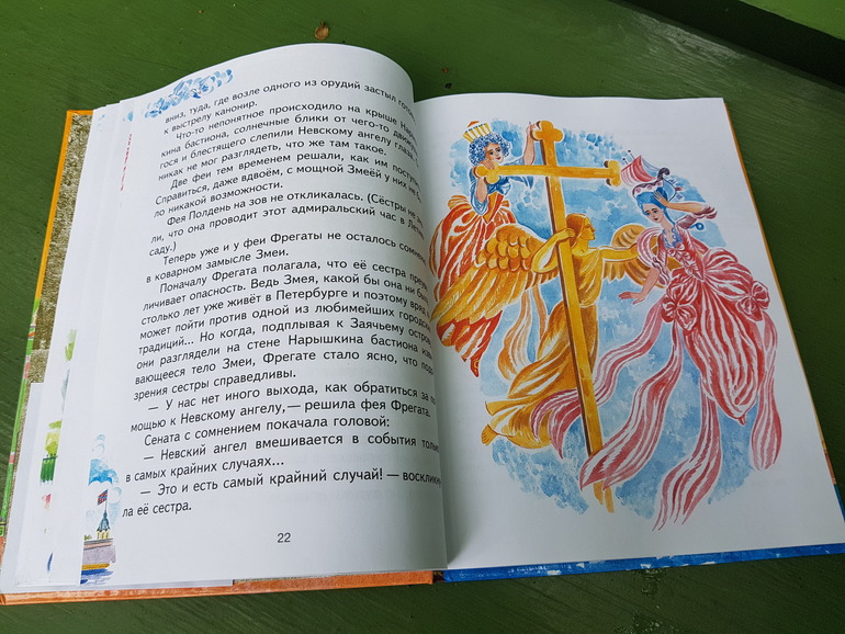 Иллюстрация хорошие. Каждая фея имеет свою "изюминку". Фея Фрегата (фея Адмиралтейства) носит корабль на голове - прическа в стиле рококо, у феи Сенаты кудряшки - гроздья сирени (Сенатская площадь в июне утопает в сирени), причёску феи Летнего сада украшает гребень - знаменитая решётка сада.