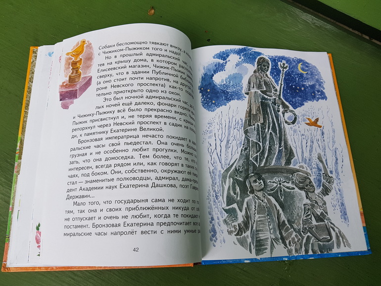 При чтении книги приходилось обращаться к поисковику - не все достопримечательности дочке знакомы. И даже те, что она видела: такие детали, как змея под копытом императорского коня, ускользнули от её внимания. Всё подробно рассмотрели.