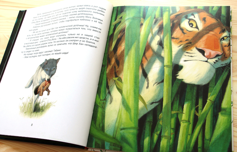 Содержание воспринимается детьми по-разному. Я читаю очень энергично, стараясь голосом выразить силу характера героев. И старший сын слушает как завороженный, а младший моментально засыпает. ))) Может дело в «Засыпаюшке», несколько страниц которой читаем до Маугли, может набегался, но он сначала рассматривает иллюстрации, а через пять минут сладко спит. Тоже хороший результат, согласитесь. )))