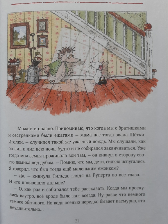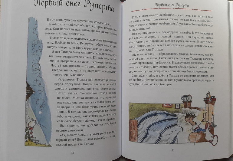 Ну и главный, конечно, показатель того, что книга полюбилась и запала в душу, это то, что герои прижились в играх, то машинку сын строит для Тильды и ежика Руперта, то устаивает им чаепитие) Чудесная во всех смыслах книга! И издана тоже чудесно) белоснежные листочки, прелестные рисунки, очаровательный цветочный принт на корешке и действительно необходимая при таком объеме красная закладочка) Жаль только, очень мало рассказов про зимние приключения, так что очень надеемся на продолжение!