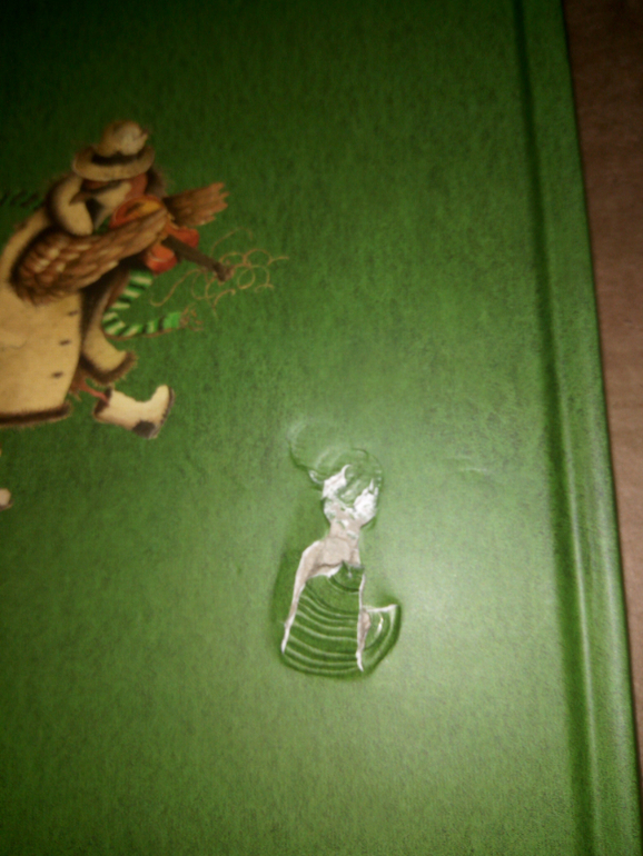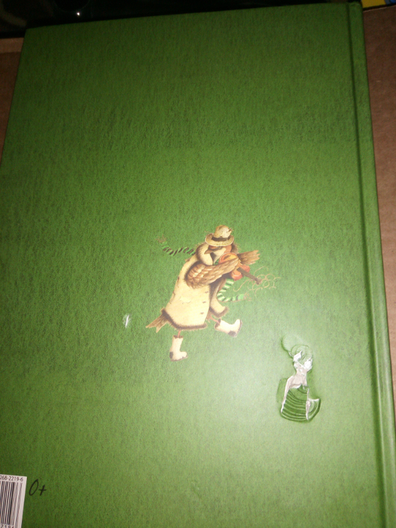 книжное разочарованиеВчера получила свой заказ от Лабиринта. Распаковывала его уже после отъезда курьера, так как книг было много, и не хотелось задерживать человека. Всё было нормально, пока я не достала со дна коробки последнюю книгу, а именно замечательный сборник потешек с иллюстрациями Николая Попова "Трынцы-брынцы, бубенцы"... Передняя обложка снизу помята и надорвана. А на задней обложке несчастной книги оказалась едва ли не сквозная дырка! И ещё маленькие круглые отпечатки возле этого места, очень похожие на следы каблука ((( В нескольких сантиметрах от этого есть ещё следы второго каблука, но там обложка лишь немного надорвана. То есть книга валялась где-то у них на полу, и какая-то дама (видимо, сотрудница Лабиринта) хорошенько так погарцевала по ней на шпильках.