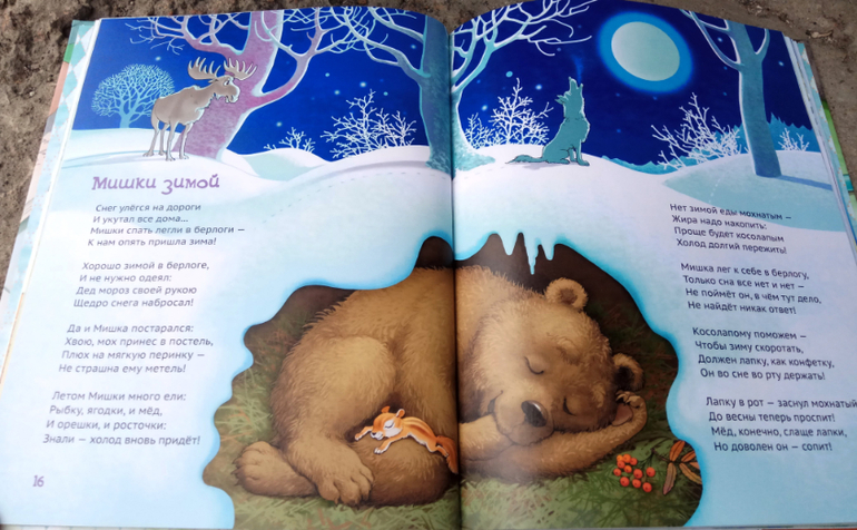 Добрая и очень приятная книга с плотными красочными страницами и крупным текстом.
