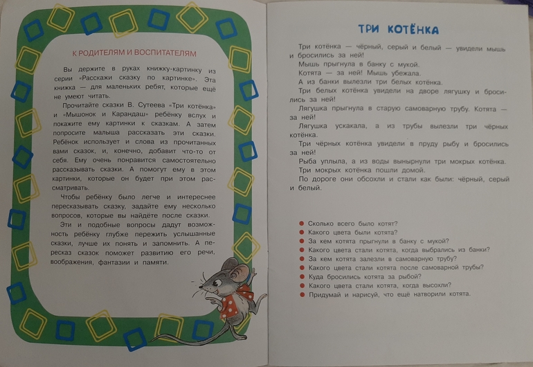 Очень хорошо помню, как у старшей дочки была любима маленькая тоненькая книжка с одной сказкой, Три котенка! До младшего, увы, она не дожила, зато дожила другая , про Цыпленка и Утенка!
