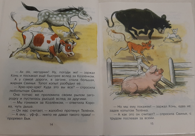 А потом я наконец то купила сборник Сказки и картинки, и успокоилась, и поняла, что это то, что нужно. Яркие рисунки, удобный формат книги и, главное, отличное и максимально полное содержание, по крайней мере на тот момент более полного сборника я не видела ..