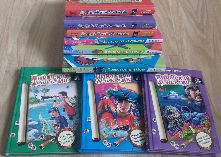 Есть у меня купленные в 90-х - начале 2000-х книги писателя Валерия Гусева. Про неугомонных братьев Алёшку и Димку(от лица которого они и написаны). Ребята постоянно влипают в какие-то детективные истории либо просто так, либо помогая своему папе - милиционеру. Написаны истории живенько,весело и не примитивно(чем часто детские детективы грешат).