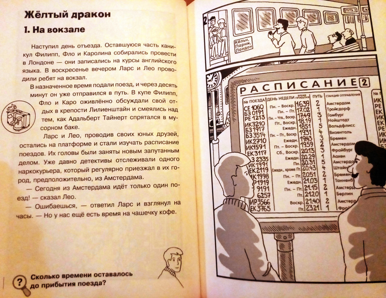 А Детектив Пьер сперва у нас очень активно "зашел". Доизучал его Миша до середины. Там на каждом развороте ОЧЕНЬ много заданий сразу, а сын у меня педантичен. Потому каждый разворот изучается им минут по 30-40. Но с середины книги выполнение заданий пошло не так бодро. Раз в месяц только книгу доставали и по 1-2 разворота изучал.