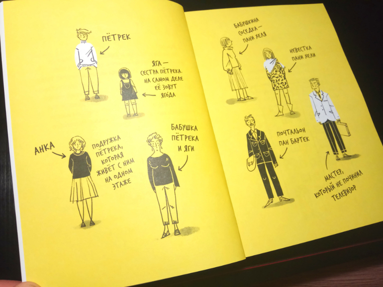 Главные герои школьники, поляки - мальчик и девочка, возраст которых не указан автором, а потому читатель любого возраста может себя ассоциировать с ними. Важно, что они школьники. Ребята одноклассники и вместе с маленькой сестренкой пришли в гости к бабушке Пётрека. А она в слезах - пропала семейная реликвия.