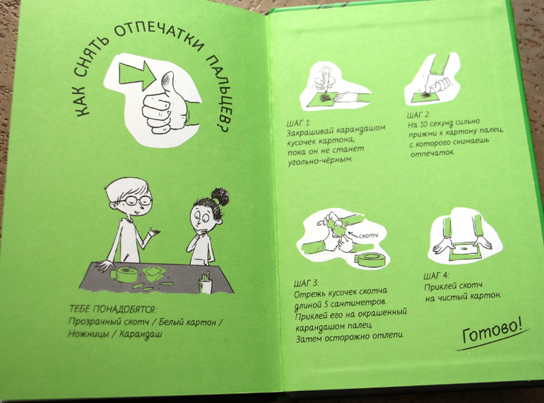 Книга дает четкие инструкции как дома самому снять и изучить отпечатки пальцев.