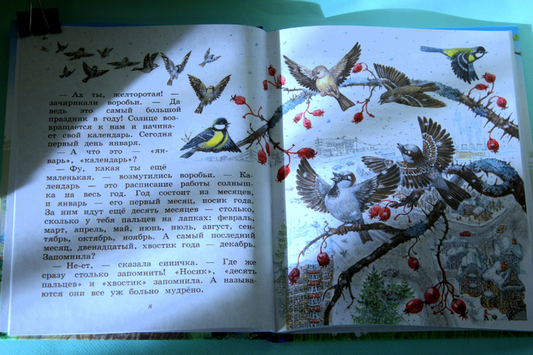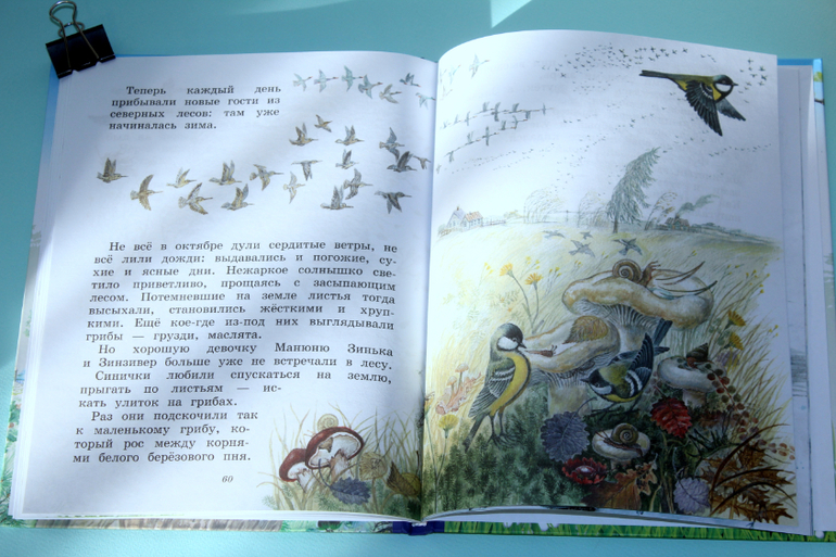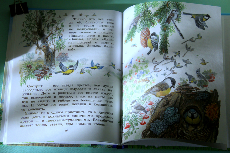 Эта книга отлично подходит как для самостоятельного чтения дошкольником, так и для совместного чтения с родителями. Всё рассказывается простым и понятным языком. Настя сказала, что интересно было читать, как синичка Зинька летала везде, знакомилась с птицами и животными, и как всё вокруг менялось.