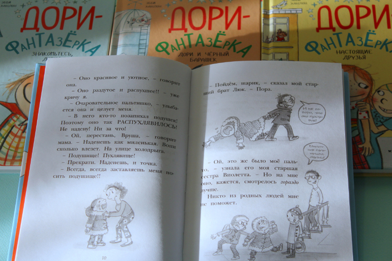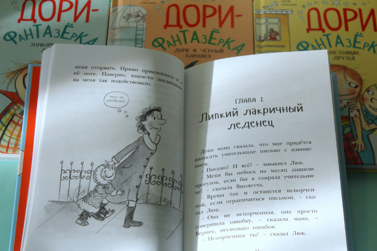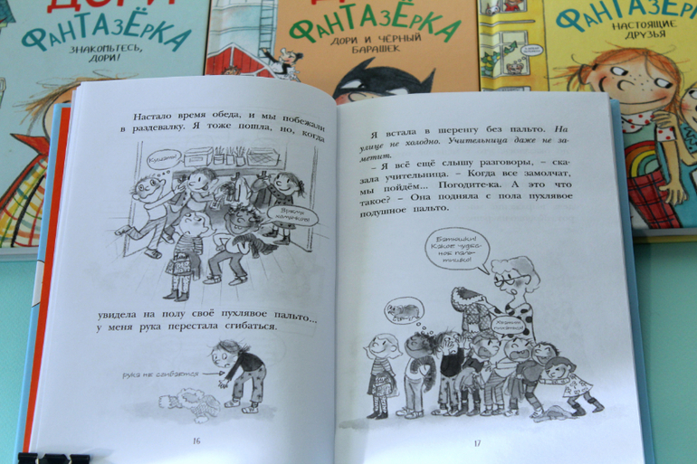 Кстати, автор Эбби Ханлон раньше работала учителем. Ученики-то её и вдохновили на написание книг про Дори. Она даже рисовать специально научилась, чтобы свои книги самой иллюстрировать, именно так, как она видит своих героев. И это было отличным решением, так как рисунки в этой серии переплетаются с текстом.