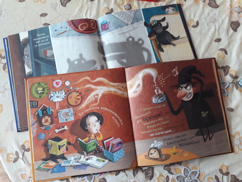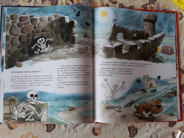 Лично мне истории показались довольно простыми, но Оля оценила. Несколько раз перечитывали про приведений, скелет и Дракулу.