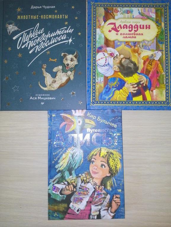 "Путешествие Алисы" очень красивая книга, не устояла. Не понятно, кому купила себе или сыну)))). "Первые покорители космоса" и "Аладдин", тоже очень понравились в вживую. Конечно, отложены, ждут своего часа.
