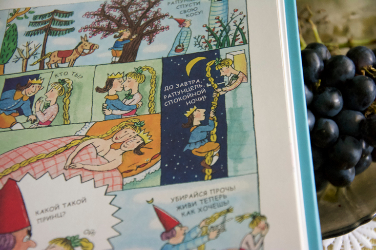 А еще я привезла от родителей мою детскую книгу - Бабушка Вьюга Братьев Гримм... и вот помню, что я ее любила - но от иллюстраций некоторых М . Майофиса мы с Илюшей так смеялись)))) для меня они кажутся просто какими то несуразно - дикими)