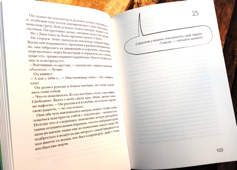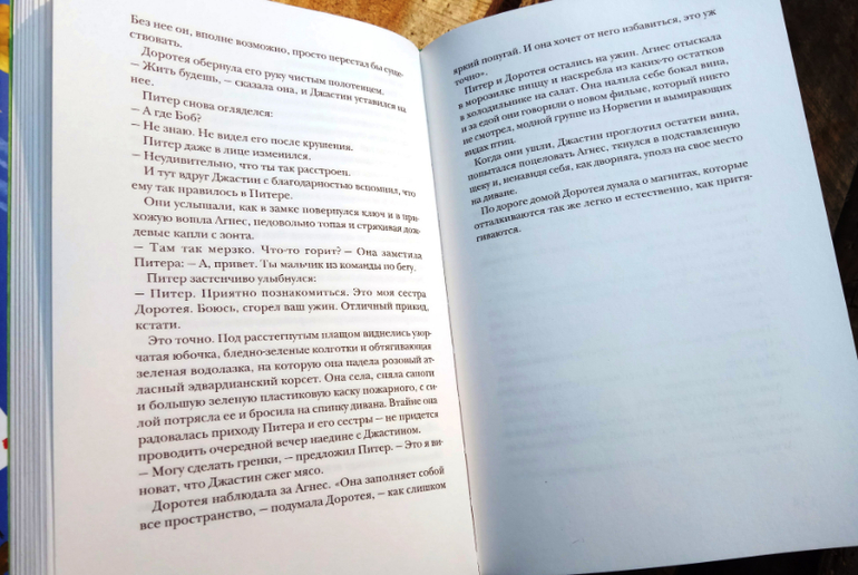 В книге есть мысли-мысли-мысли, но нет шаблонного «увлекательного сюжета». Размышлений много: осмысление жизни, случайностей, поступков, совпадений, судьбы. Я не очень люблю классику, но, читая книгу, вспоминала Достоевского. Очень, на мой взгляд, схож смысл персонажей.