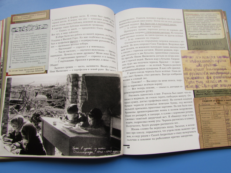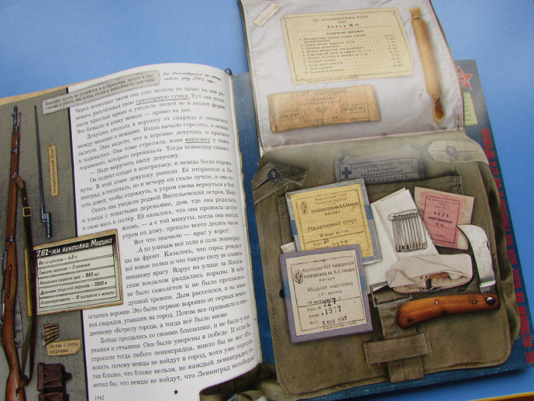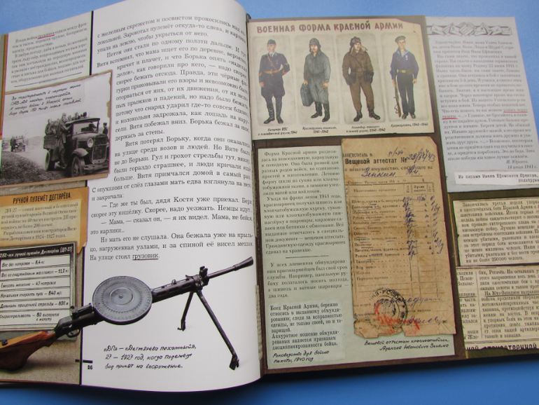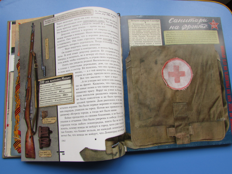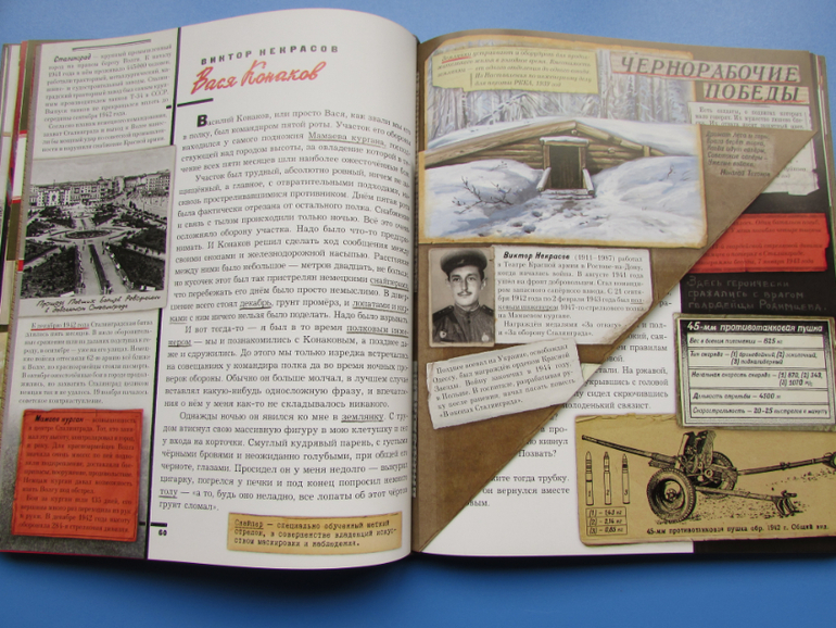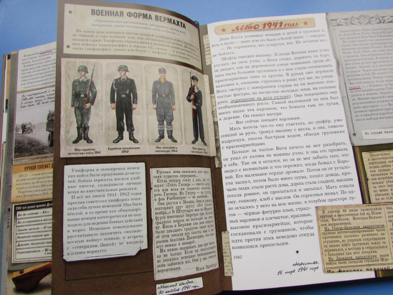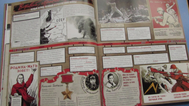 Отдельные развороты посвящены самым значимым моментам: битве за Москву, битве на Курской дуге, блокада Ленинграда...