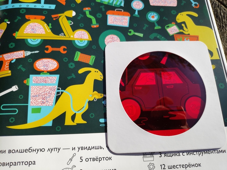 Для подарка не только дошкольникам, но и младшим школьникам для формирования положительного отношения к книге в целом - отличный вариант! Ведь общение с книгой - веселая интересная игра, как для одного читателя, так и для того, чтоб поиграть вместе с друзьями. Тут еще и подключается тренировка терпения, чтоб не подсказывать и не мешать, даже если ты нашел объект раньше игрока, в чьих руках сейчас лупа.
