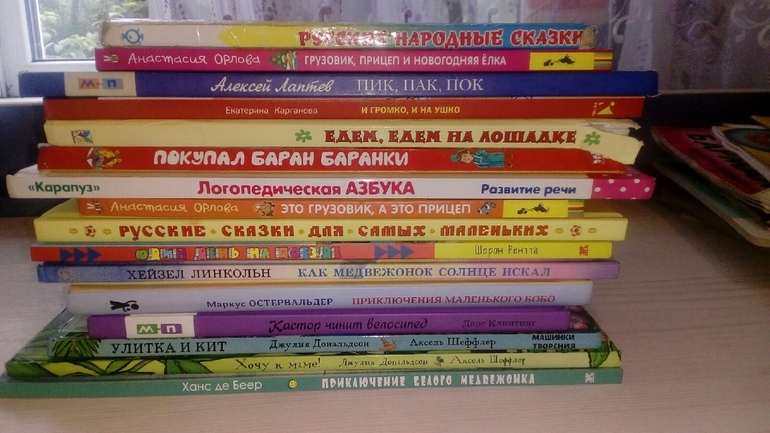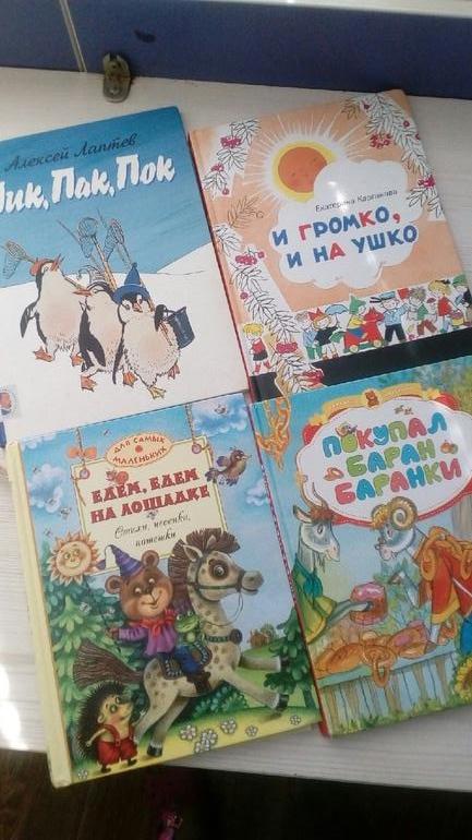 В какой-то момент, это было уже давно, мы читали сборник Е.Каргановой И громко, и на ушко. Прочитали его весь несколько раз. Потом я предлагала сборник Покупал баран баранки. У Лиды в этом возрасте он был залюблен( Макс слушал, но до конца мы, по-моему, ни разу его не осилили, и потом как-то забросили. Попробую еще потом предложить. Пытались читать сборник Лаптева Пик, Пак, Пок. Мне он само, честно говоря, не очень нравится. Лида в детстве его слушала, но не очень много. С Максом тоже плохо пошло. Сборник Едем, едем на лошадке я читала Максу, когда он был совсем маленьким, а в последнее время не хочет слушать. Логопедическую азбуку пытаюсь ему читать, но он сопротивляется.