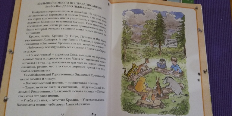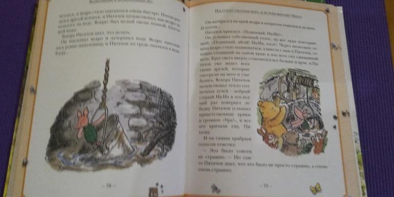 Книга про Винни Пуха - продолжение историй про него. Шрифт крупный, иллюстраций много. Думаю, вполне подойдет для самостоятельного чтения. Первая книга "Винни Пух и все все все" у нас огромного размера, толстая, шрифт не крупный. Читать ее не очень удобно. Жалею, что купила все истории в одной книге. Надо было брать по отдельности.
