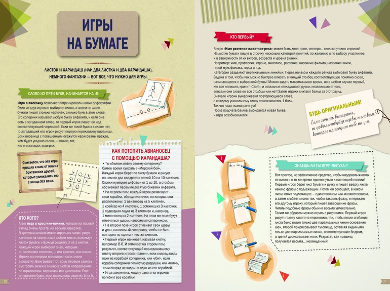 Но самое интересное в этой книге, это конечно же содержание. Тут вам и тайные шрифты и разные игры и необычные идеи для поделок (например перископ или диджериду или снегоступы).