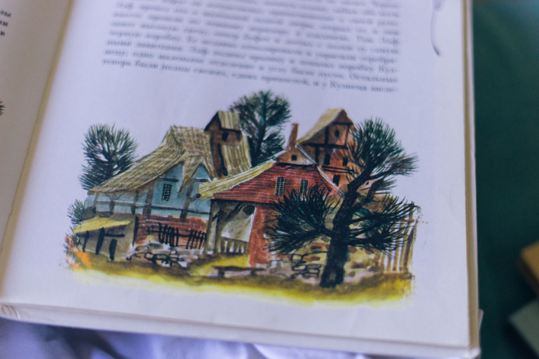 "Кузнец из Большого Вуттона" в переводе Нагибина и Гиппиус с рисунками Острова. Наконец, наконец Остров разрешил мне полюбить его. Никакие другие иллюстрации я не приму к изящной и лиричной сказке Толкиена. Нагибин в предисловии напустил туману, и возможно я, уже сто лет назад ушедшая из подросткового возраста, и так и не сумевшая собрать кубик рубика, не поняла чего-то, а что-то поняла не так. Мне всё равно. Я люблю эту красивую историю, и она уже стала частью моей жизни. Здесь всё прозрачно, здесь хорошо и близко. Жаркий ветер середины июля листал страницы моего путешествия в Волшебную страну.